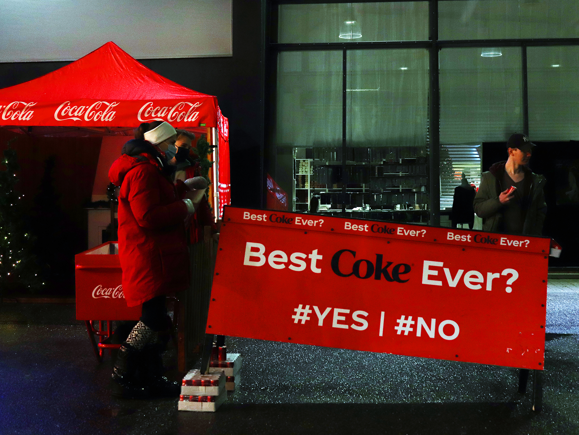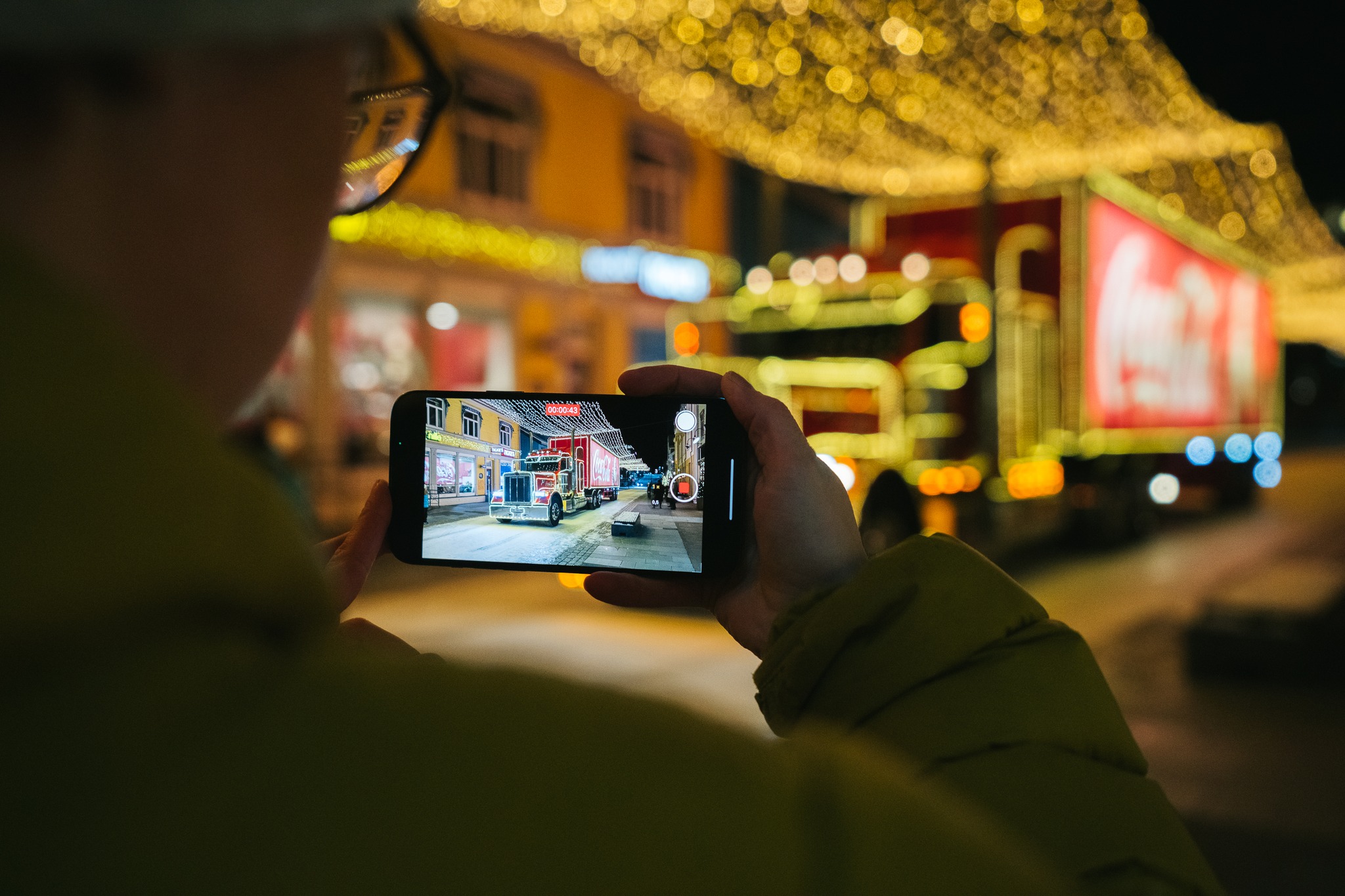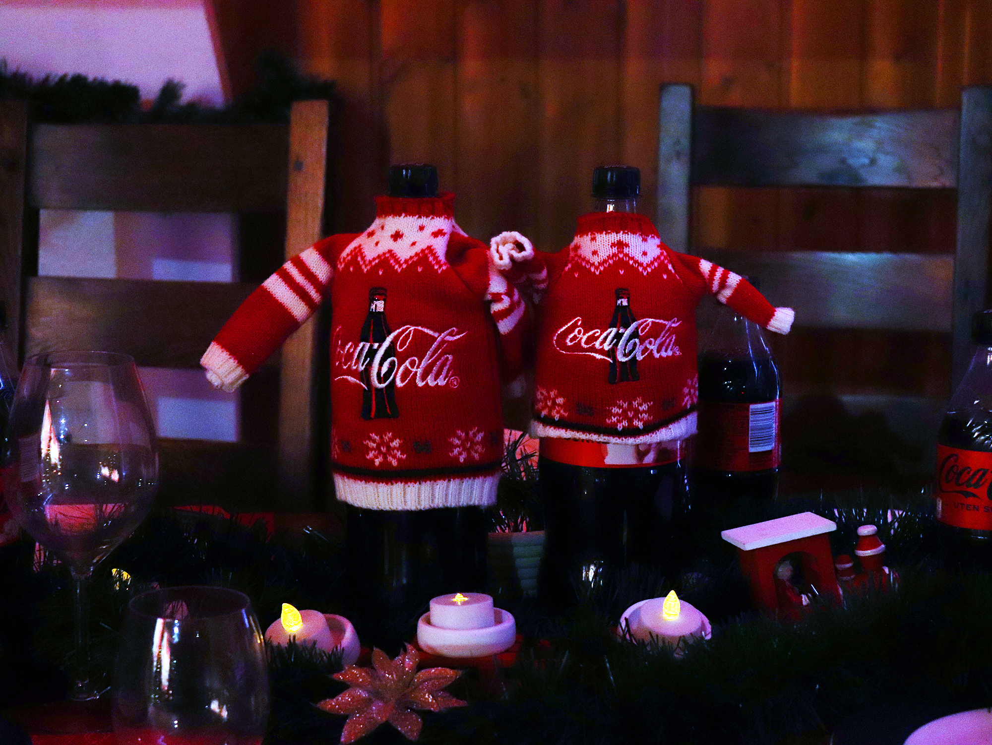 I reklamen ble tre 18-hjuls “kulisser” omdannet til en uendelig trailerkaravane, som kjørte gjennom daler og byer. Hver trailer var en 40-fots, 2-tonns “lysfontene” på hjul med mer enn 30 000 lyspærer. Dette ble muliggjort ved å kombinere live-bilder i full størrelse med miniatyrer, filmteknisk duplisering og digitale “matte paintings” (tegninger av omgivelser). Med litt animasjon kunne julenissen utbringe en skål for julen på slutten av reklamefilmen.